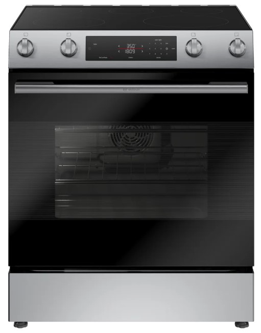 The slide-in design replaces existing range cutouts and slides back against the wall for a sleek look.