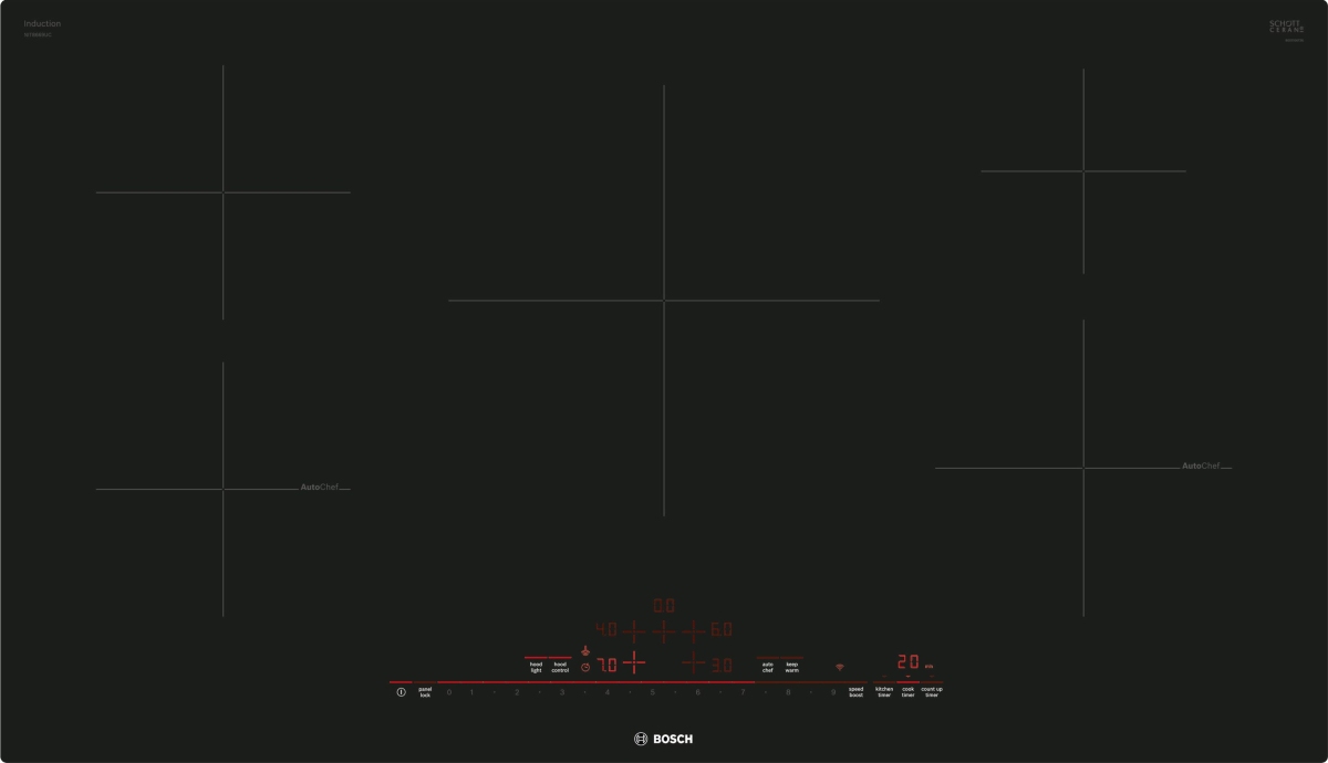 Step up to Bosch Induction. Choose a streamlined look and precise performance of a Bosch induction cooktop. 800 Series cooktops offers consistent element temperature settings for more precise cooking results using AutoChef®. Bosch cooktops can be installed in a frameless design to integrate more seamlessly with the countertop or a stainless steel framed design to stand proud. Speed up dinner for more moments to savor. Sometimes you don't want to wait for a pot of water to boil. The SpeedBoost™ function on Bosch induction cooktops adds even more power to speed up the cooking process. So you can boil water twice as fast as conventional electric cooktops.
