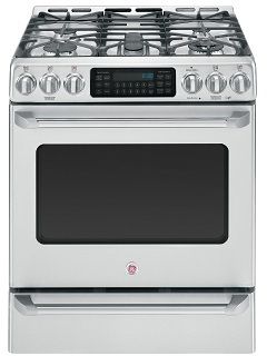 | Features: | <p><strong>Appearance</strong></p><ul><li>Stainless Steel Cooktop</li><li>Commercial Styling</li><li>Big ClearView Window</li><li>Café™ Stainless Handles</li><li>Professional-Style Knobs</li><li>Stainless Steel Frameless Oven Door</li></ul><p><strong>Convection bake</strong></p><ul><li>Optimal setting for baked goods and casseroles</li></ul><p><strong>5.4 cu. ft. oven capacity</strong></p><ul><li>Enough room to cook an entire meal at once</li></ul><p><strong>Baking drawer</strong></p><ul><li>Offers an additional 1.0 cu. ft. of capacity for convenient baking from 140 to 450</li></ul><p><strong>Self-clean oven</strong></p><ul><li>Conveniently cleans the oven cavity without the need for scrubbing</li></ul><p><strong>Non-stick griddle</strong></p><ul><li>Large non-stick surface perfect for griddle cooking</li></ul><p><strong>20,000 BTU tri-ring burner</strong></p><ul><li>Offers the flexibility of three different burners</li></ul><p><strong>Oven Interior Dimensions</strong></p><ul><li>24 x 17.5 x 20</li></ul><p><strong>Oven Exterior Dimensions</strong></p><ul><li>30.75W x 29.875D x 36.5H</li></ul> |