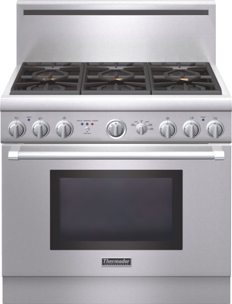 Thermador® Professional Series Pro Harmony® 36" Pro Style Dual Fuel Range with 5.0 cu. ft. oven capacity, 6 sealed burners, patented Star® burners and two hour self cleanRead More